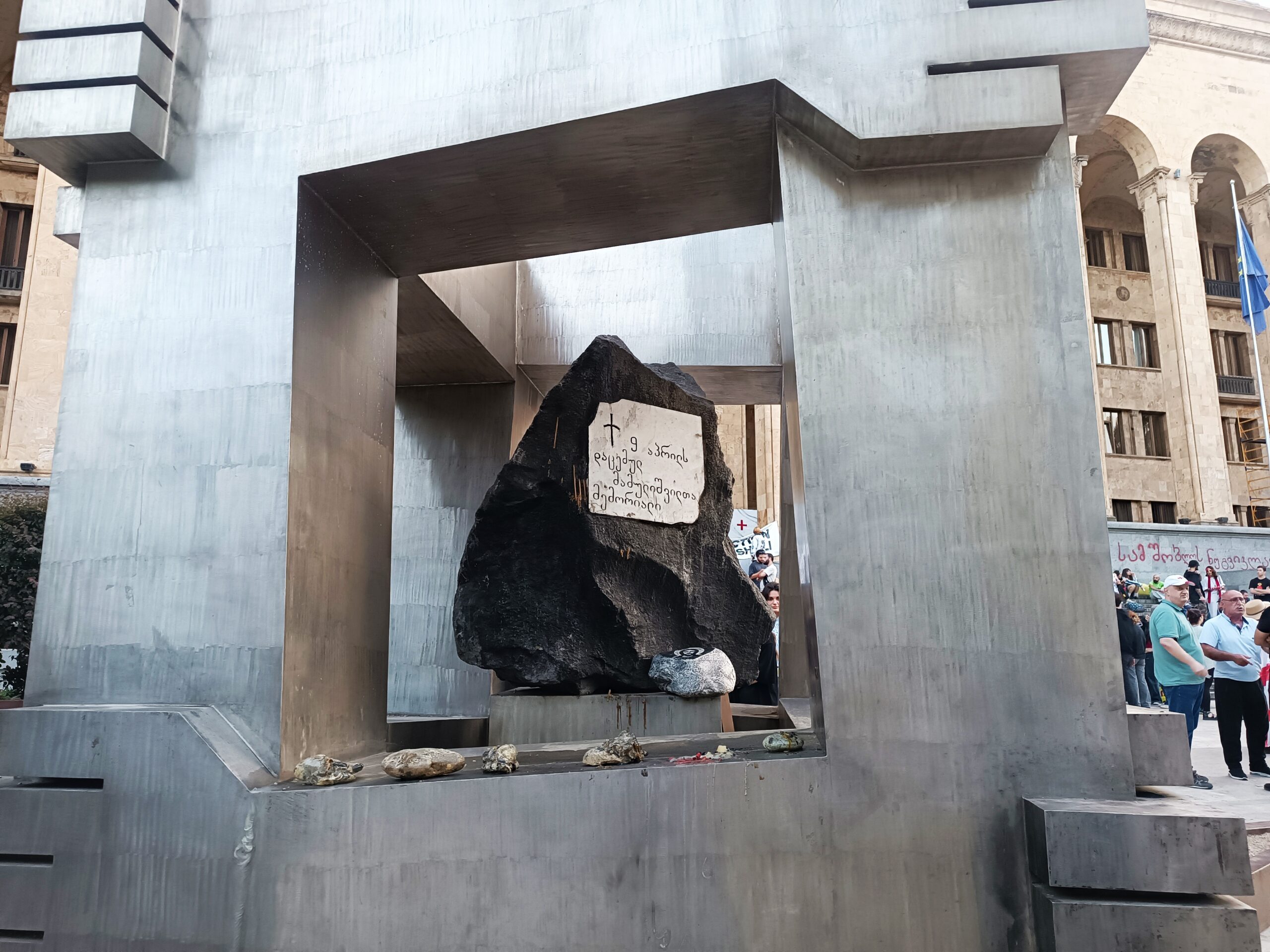 Przed parlamentem pomnikiem Ofiar sowieckiej masakry z 9 kwietnia 1989 roku.